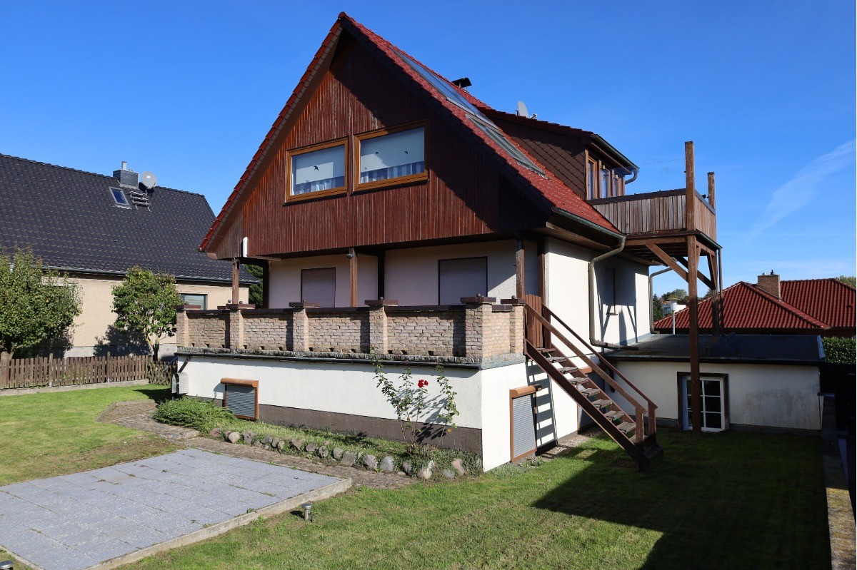 Das Haus steht auf einem schön geschnittenen, gepflegten und nach Westen ausgerichteten Grundstück mit pflegeleichtem Garten, einer sonnigen Terrasse (ca. 22 m²) und einem Balkon (ca. 7 m²). Eine Garage mit Zugang zum Haus sowie drei Außenstellplätze runden das Gesamtbild ab.