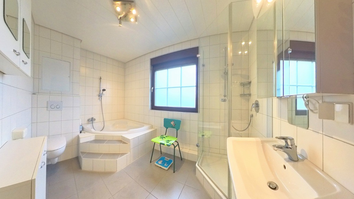 Im Bereich Flur und Duschbad im Souterrain sowie am Balkon im Dachgeschoss besteht ein leichter Renovierungsbedarf, der sich mit überschaubarem Aufwand beheben lässt.