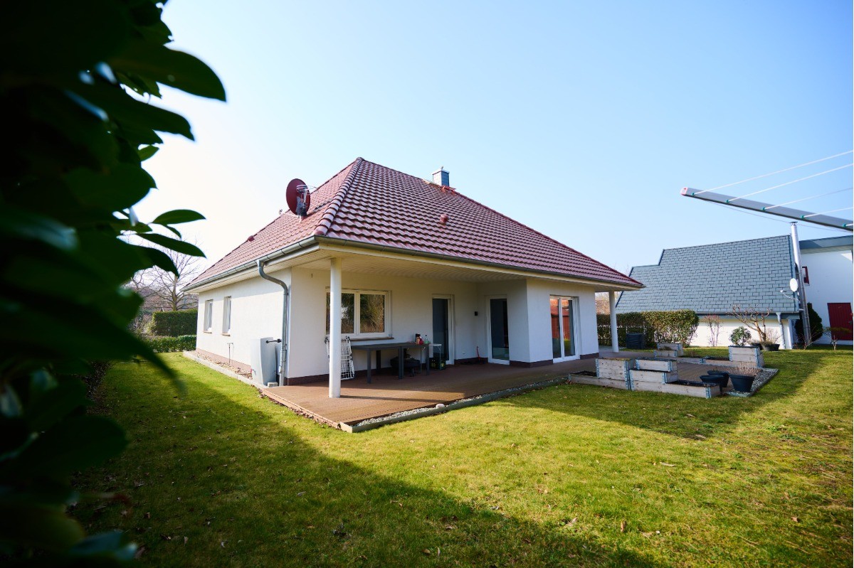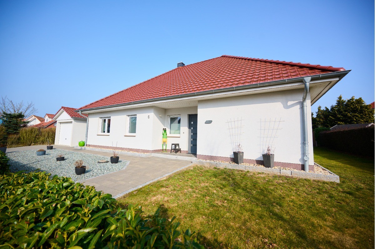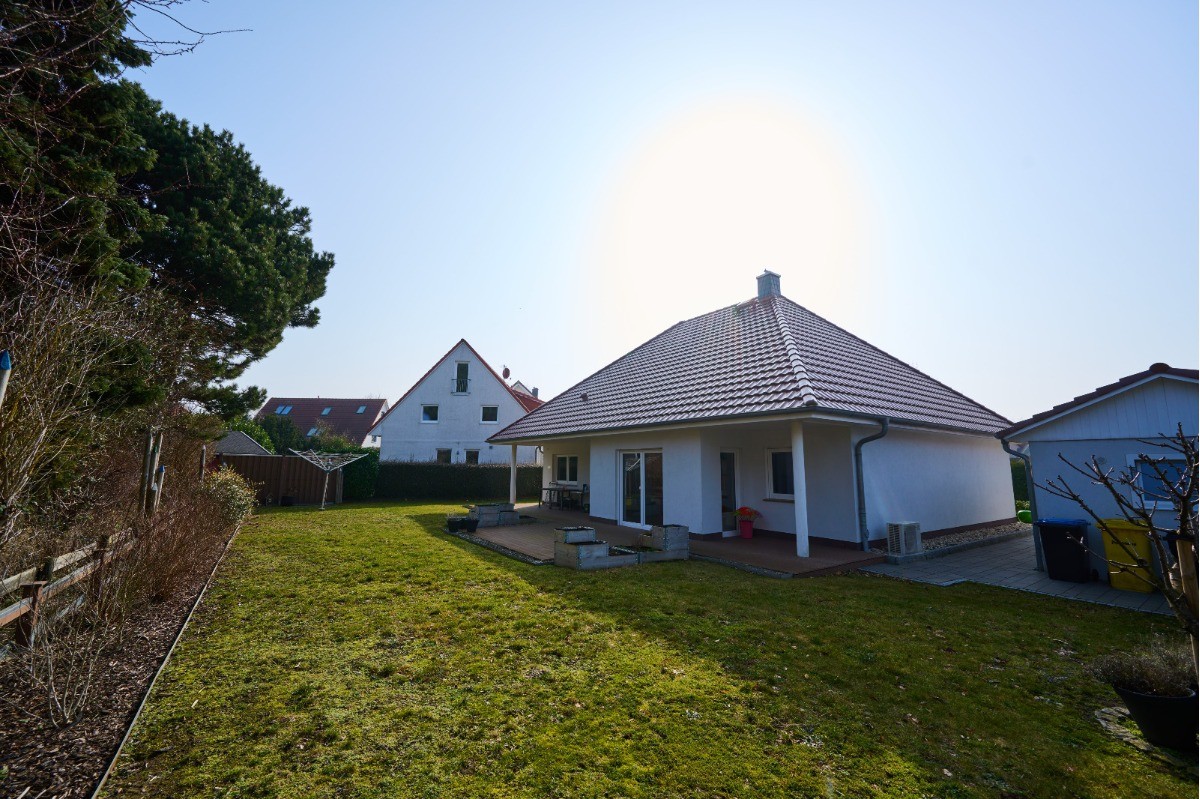 Dieses moderne Einfamilienhaus vereint komfortables Wohnen auf einer Ebene mit einer der begehrtesten Lagen an der Ostseeküste zwischen Ostsee und Salzhaff. In attraktiver Bungalowbauweise im Jahr 2017 in massiver Bauweise errichtet, präsentiert sich die Immobilie als gepflegtes Zuhause mit barrierearmer, ebenerdiger Wohnstruktur, durchdachter Raumaufteilung sowie hochwertiger und zeitgemäßer Ausstattung. Besonders hervorzuheben ist die hervorragende Energieeffizienz des Hauses: Mit der Energieeffizienzklasse A+ und einem Endenergiebedarf von lediglich 28,8 kWh/(m²·a) überzeugt die Immobilie durch einen sehr niedrigen Energieverbrauch und eine zukunftsorientierte Beheizung mittels moderner Luft/Wasser-Wärmepumpe.