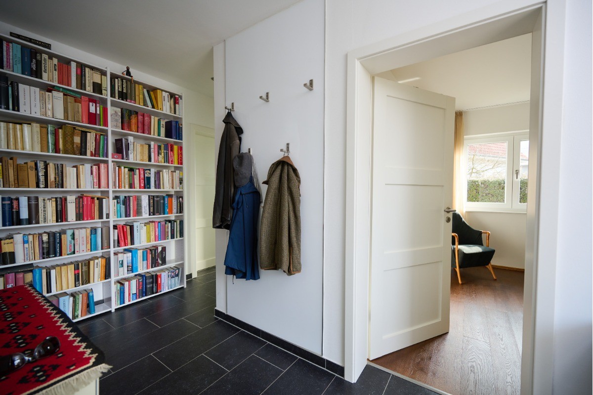 Der Grundriss überzeugt durch seine klare und alltagstaugliche Struktur: Vom zentral gelegenen Flur aus sind alle Räume bequem erreichbar, wodurch kurze Wege und eine optimale Nutzung der Wohnfläche gewährleistet sind. Der Wohnbereich fungiert dabei als kommunikatives Zentrum und vermittelt ein angenehmes Gefühl von Offenheit und Wohnlichkeit.