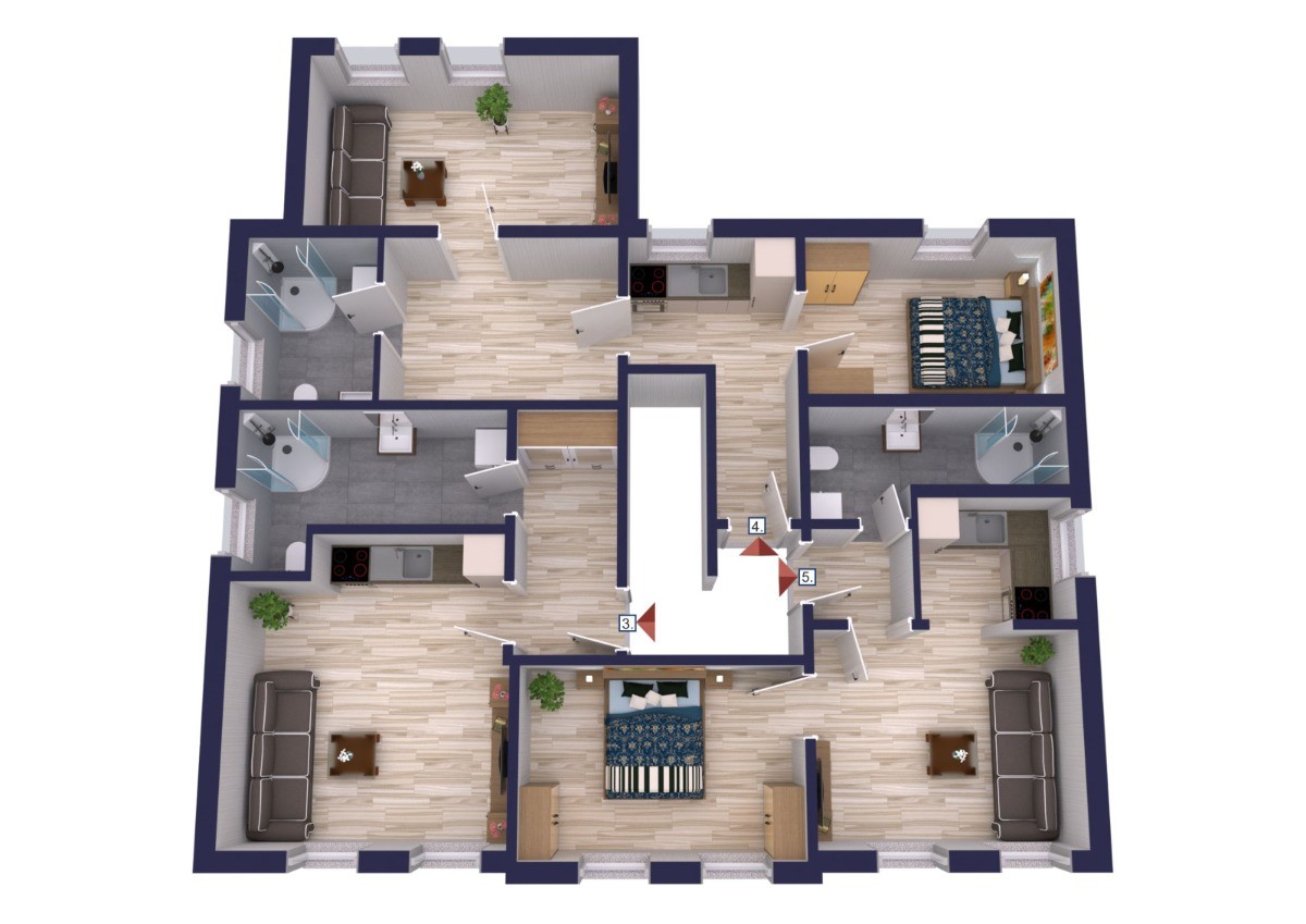 Die fünf Wohneinheiten verteilen sich wie folgt:
