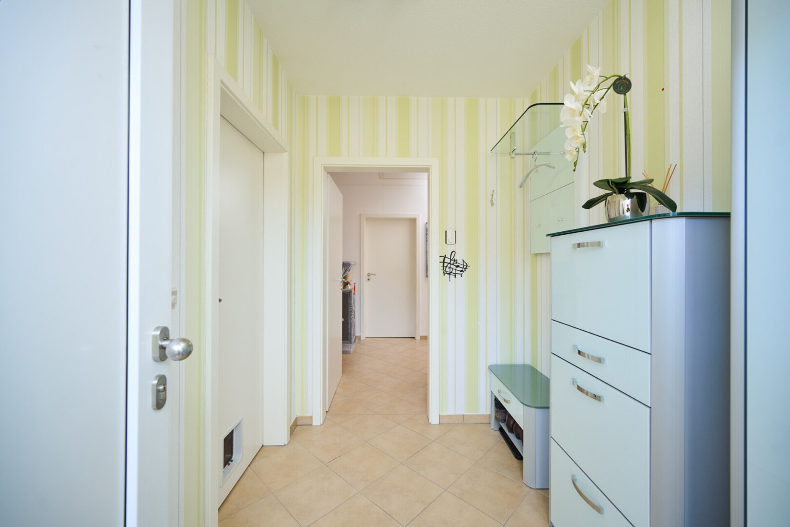 Bereits beim Betreten des Hauses spüren Sie die Großzügigkeit und Klarheit des Grundrisses. Der zentrale Flur fungiert als verbindendes Element und erschließt alle Räume auf kurzen Wegen. Die durchdachte Anordnung sorgt für ein offenes Wohngefühl, ohne dabei auf Struktur und Rückzugsmöglichkeiten zu verzichten.