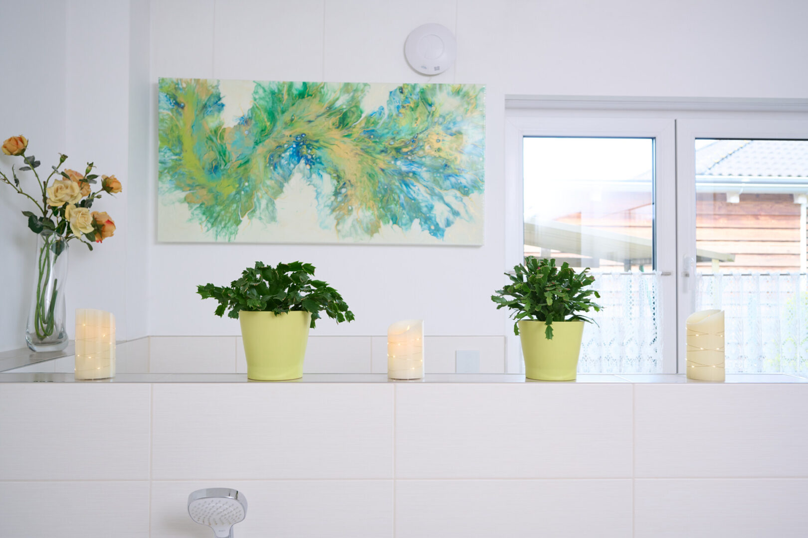 Die Ausstattung des Hauses erfüllt gehobene Ansprüche. Eine Fußbodenheizung in allen Räumen, betrieben über Fernwärme, sorgt für angenehmes Raumklima. Elektrische Rollläden, überwiegend bodentiefe Fensterflächen, hochwertige Bodenbeläge aus Fliesen und Vinyl, weiße Innentüren sowie eine Gegensprechanlage runden das Gesamtbild ab.